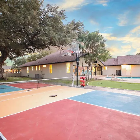 Experience an exquisite retreat at the Sleeps 16 Private Pool Sport Court Hot Tub Arcade Villa, a luxurious haven designed for family and friends seeking unparalleled relaxation and fun. Nestled in the vibrant city of San Antonio, this stunning villa is just a short drive from the bustling downtown area and its myriad of attractions. Only 10 kilometers from San Antonio International Airport, guests will find this location both accessible and conveniently situated for exploring the local culture.